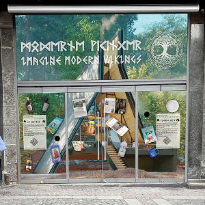 På Vimmelskaftet 42 er der for tiden flyttet vikinger ind. Et tomt butikslokale er midlertidigt udsmykket med et tema om moderne vikinger.