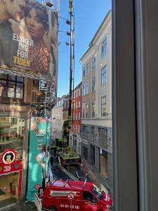 Undskyld! Vi roder og fylder lidt på Strøget og i Badstuestræde i disse dage.Vores ejendom på Vimmelskaftet 45/Badstuestræde 1-3 er ved at få tilført en ny tagetage, som bliver et fantastisk kontorlejemål på ca. 180 m2 med egen tagterrasse. For at etablere tagetagen har vi i denne uge kranet stål op fra det smalle stræde. En seance, der har været lidt af et tilløbsstykke for de mange forbipasserende på Strøget. På billedet kan du se, hvordan det går for sig, når en af de sidste stålbjælker hejses fra gaden og op over taget. I ejendommen er vores eksisterende lejere, BR butikken og Margrethe-Skolen, pakket ind i stillads helt frem til juli måned, mens byggeriet pågår. Vi glæder os til at vise den nye flotte, kobberbeklædte tagetage frem når den står færdig.